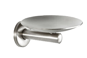 Sabonera de paret, per a bany, model Public 88057 "PRESTO EQUIP", d'acer inoxidable AISI 304, acabat setinat, circular, amb suport mural.